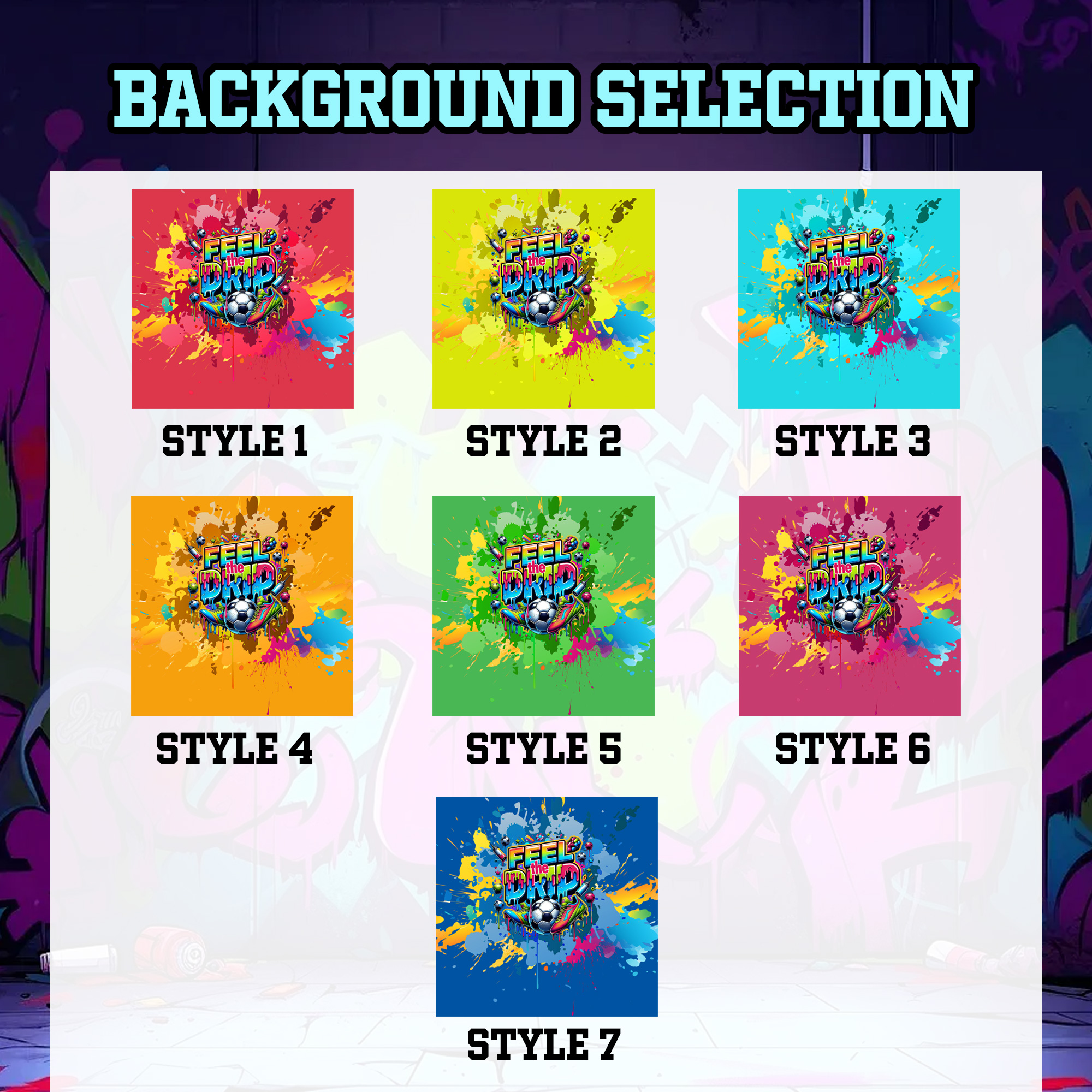 Graffiti Drip Style - A bold soccer-inspired design with a “Feel the Drip” graffiti effect brings street style and game energy together, highlighted by dynamic football patterns that stand out on every sip.