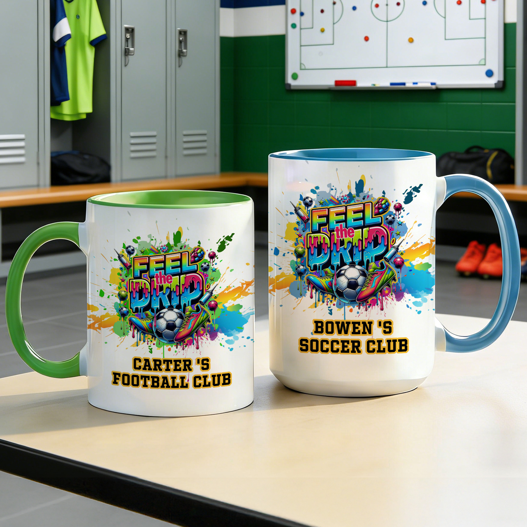 | Style | Personalized Name Graffiti Feel the Drip Soccer Mug |
